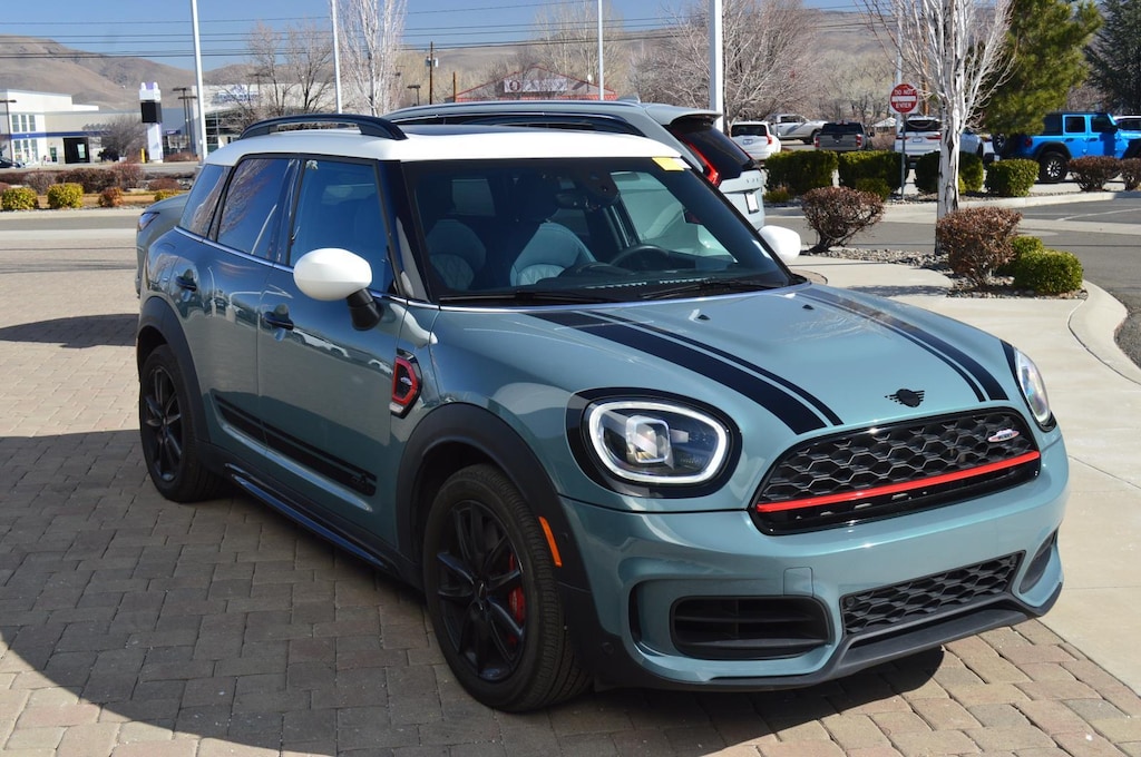 ICONIC TRIM 2.0, WHEELS: 18 X 8.0 JCW GRIP SPOKE BLACK, SAGE GREEN METALLIC, FRONT SPORT SEATS, INDIGO BLUE, CHESTERFIELD LEATHER UPHOLSTERY, PIANO BLACK EXTERIOR TRIM, WHITE ROOF & MIRROR CAPS, PRIVACY GLASS, BLACK SPORT STRIPES, PICNIC CUSHION, HARMAN/KARDON CREDIT, POWER FRONT SEATS, HEATED STEERING WHEEL, ACTIVE CRUISE CONTROL, MINI YOURS SHADED SILVER ILLUM INTERIOR STYLE, POWER TAILGATE, REAR CENTER ARMREST, ALARM SYSTEM